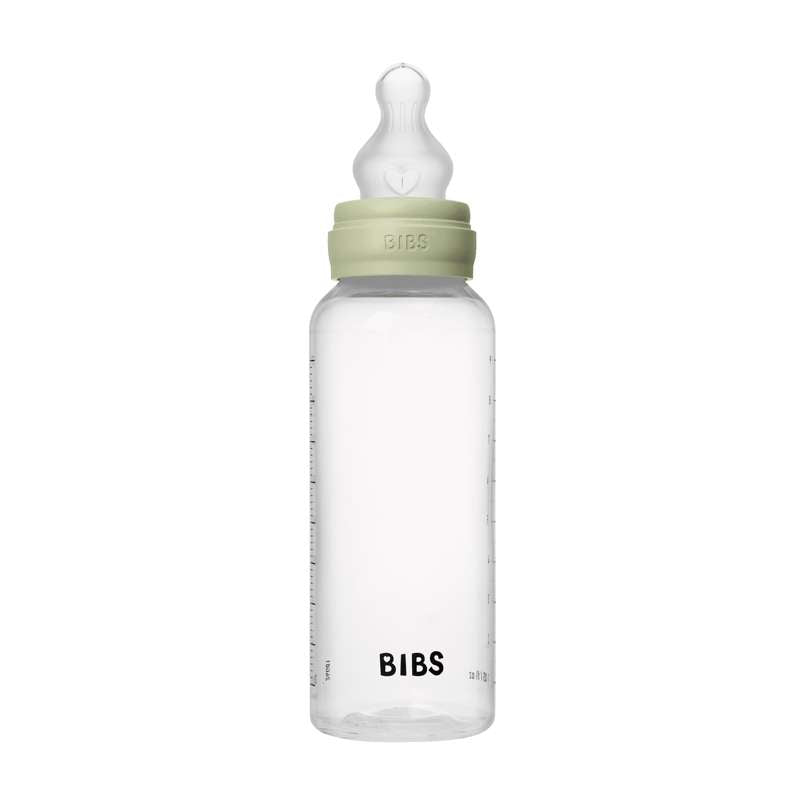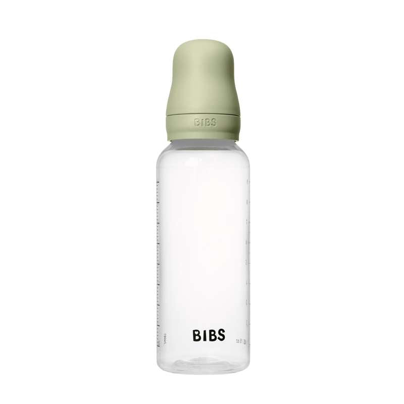 Комплектът BIBS Bottle с пластмасово шише за хранене.