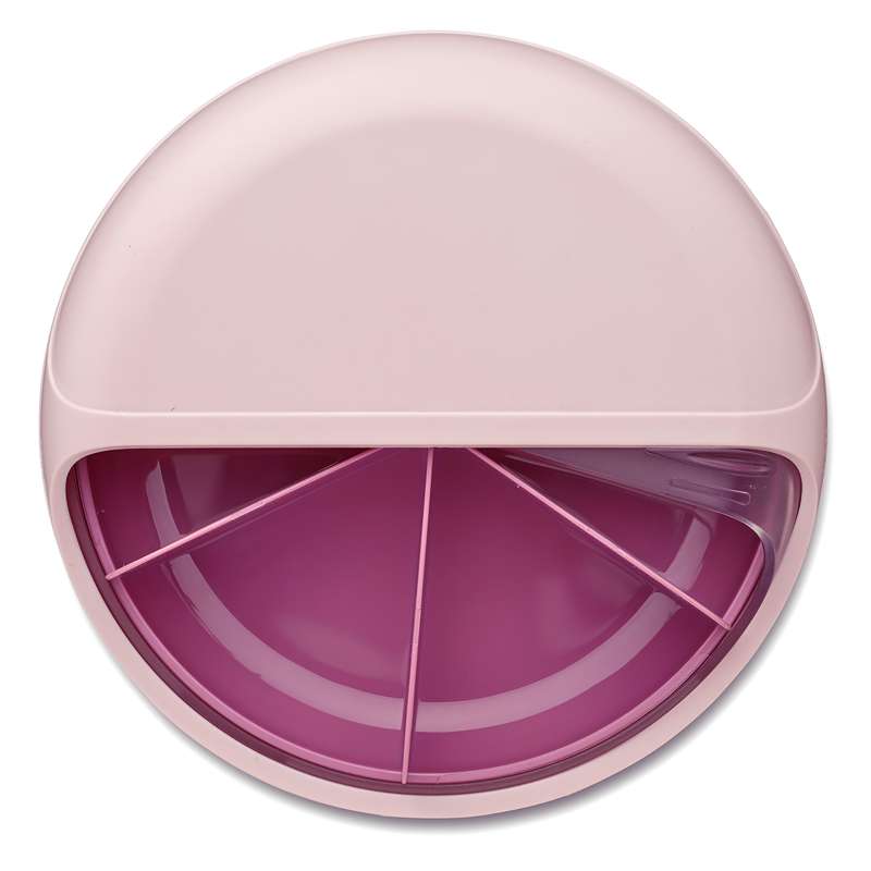 Красива и практична кутия за закуски за големи и малки. BentoDISC е по-голямата версия на популярния SnackDISC и е проектирана като кръгла касета с въртяща се дискова част. Дисковата част има 5 отделения, които могат да се напълнят с вкусна храна или закуски, като например мини бисквити, стафиди, ядки, краставица, ябълка, грозде или сушени плодове.