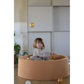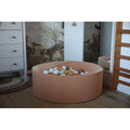 Басейнът е изработен от пяна, с et приятно Бежов джърси покривало.