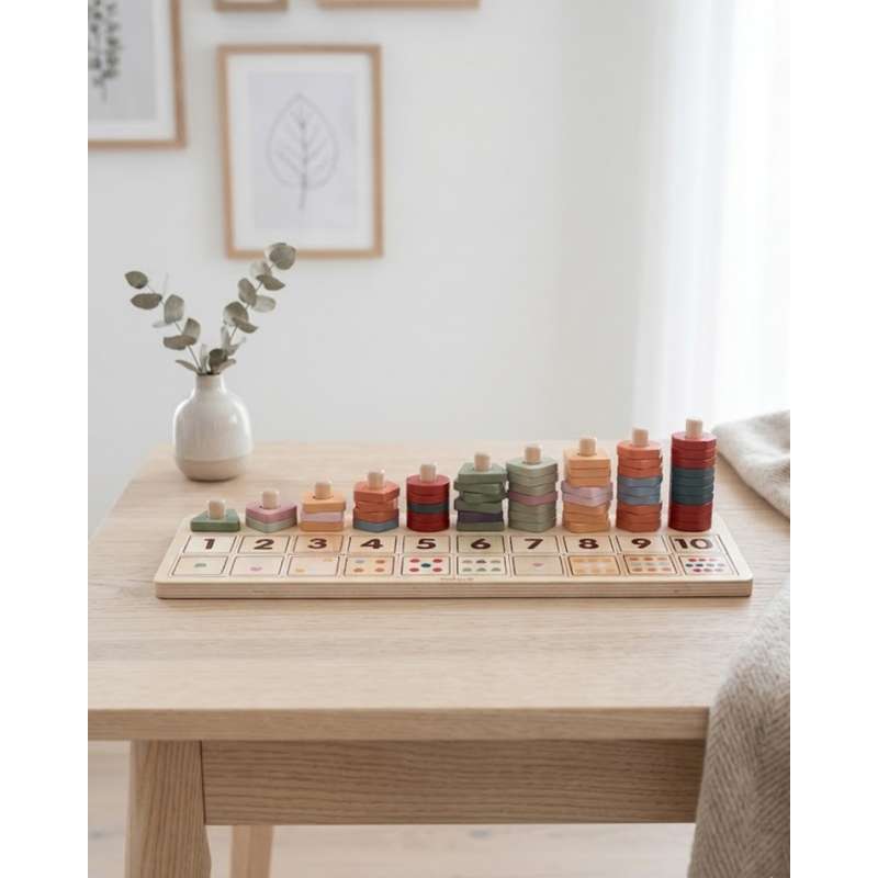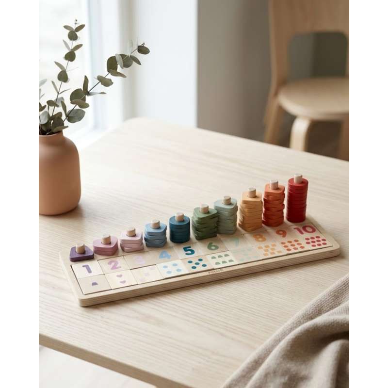 Selv om den er til 3 år er skiverne til at stable lige små nok- de kan ikke sluges, men stadig puttes i munden