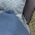 Люлката е подходяща за куклите Лео, Леонора, Пабло и Мария от Memories by Así и се предлага в два варианта, тук е показана с платове в нежно синьо квилт и винтидж шарка джърси, както и et плетено одеяло в нежно синьо.