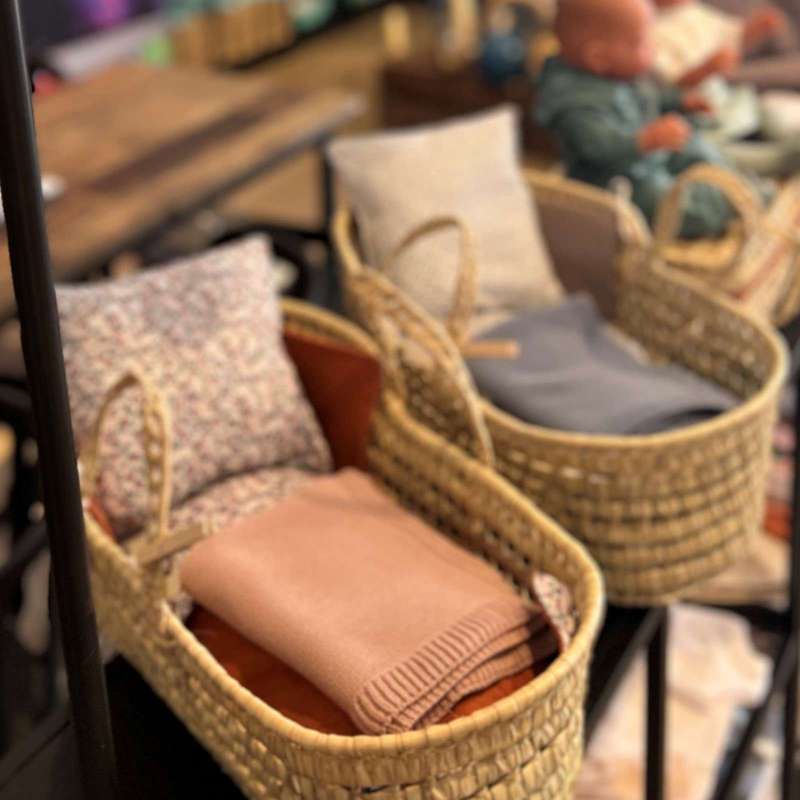 Люлката от Memories by Así е изработена от стабилна натурална плетеница с мека възглавница от квилтно платно и идва с приятно дебел матрак, мека джърси възглавница, et завивка от два слоя джърси, едната с шарка, другата в едноцветен цвят, както и плетен одеяло.