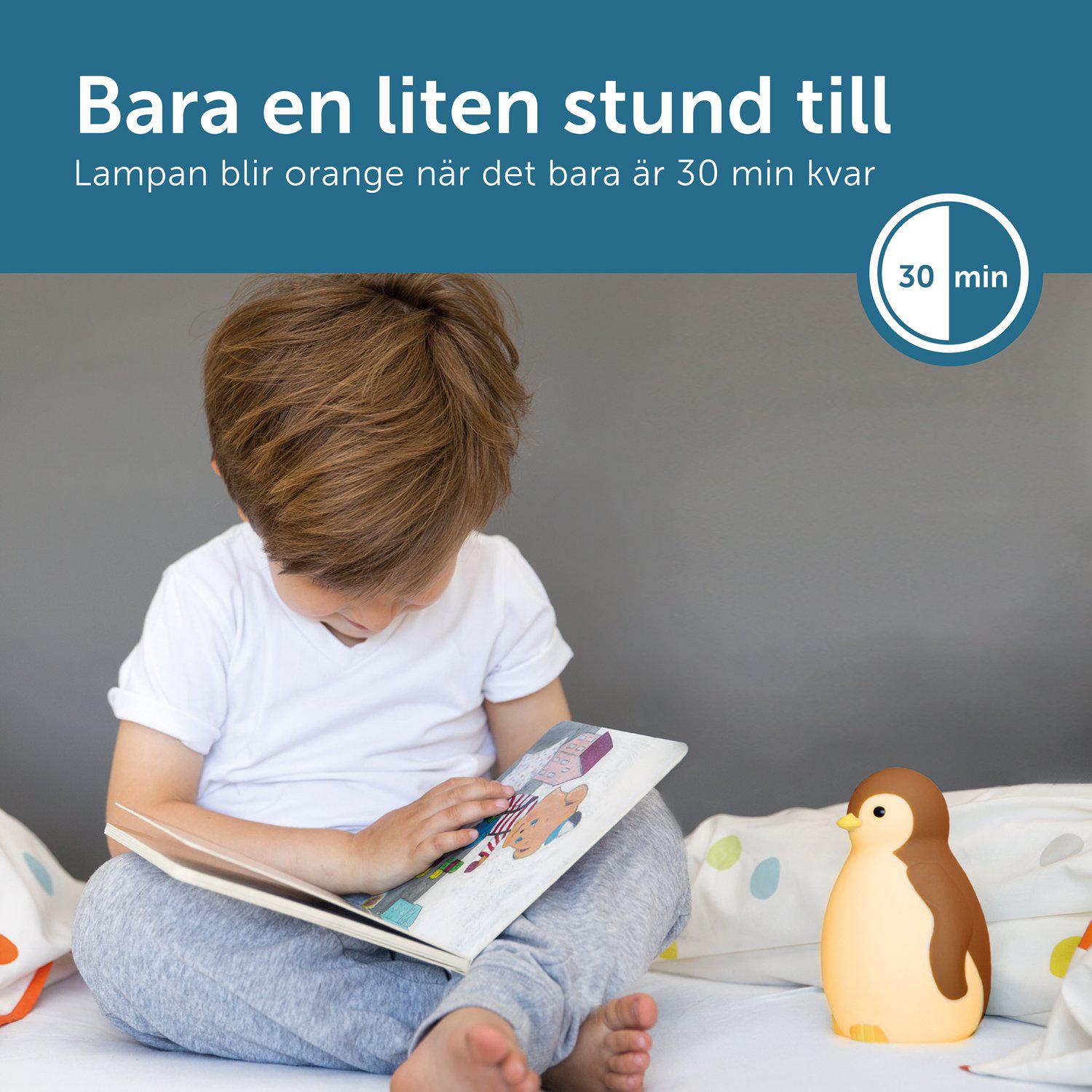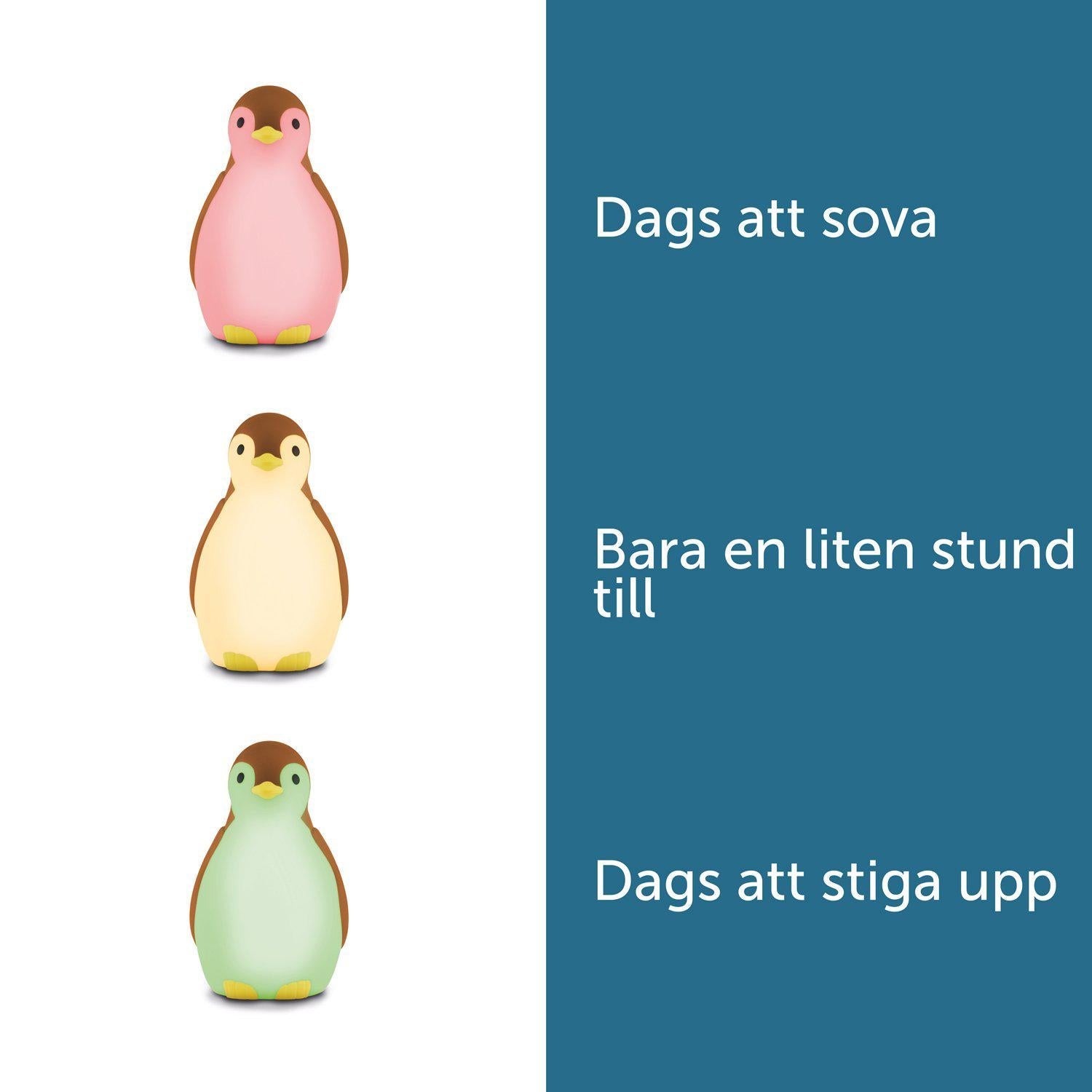 Пингвинът Пам може да помогне на вас и вашето дете да имате добър сън. Когато детето трябва да си легне, Пам ще бъде добър приятел на детето, с успокояваща светлина и с възможността да пуска песни или истории през безжичния високоговорител. Рано сутрин, когато детето обикновено би се промъкнало от леглото, неосъзнавайки, че е все още много рано, спалният помощник Пам с цвета на светлината ще показва дали е добре да станат или трябва да изчакат малко по-дълго. Това може да осигури допълнителен сън и на детето, и на възрастния, от който и двамата спешно се нуждаят. Вашето дете може да избере любимия си цвят за нощна лампа, включително розово, бяло, синьо, червено и многоцветно. Освен това можете да изберете да оставите светлината включена през цялата нощ или да накарате Пам да се изключи автоматично след 30 минути. Безжичният високоговорител ви дава възможност да пускате безкрайно много различни песни и истории, подходящи за всички. Всяка сутрин Пам автоматично ще свети оранжево половин час преди да е добре да станете, а когато е добре да станете, Пам свети зелено – времето за това можете да настроите сами.