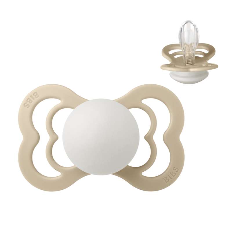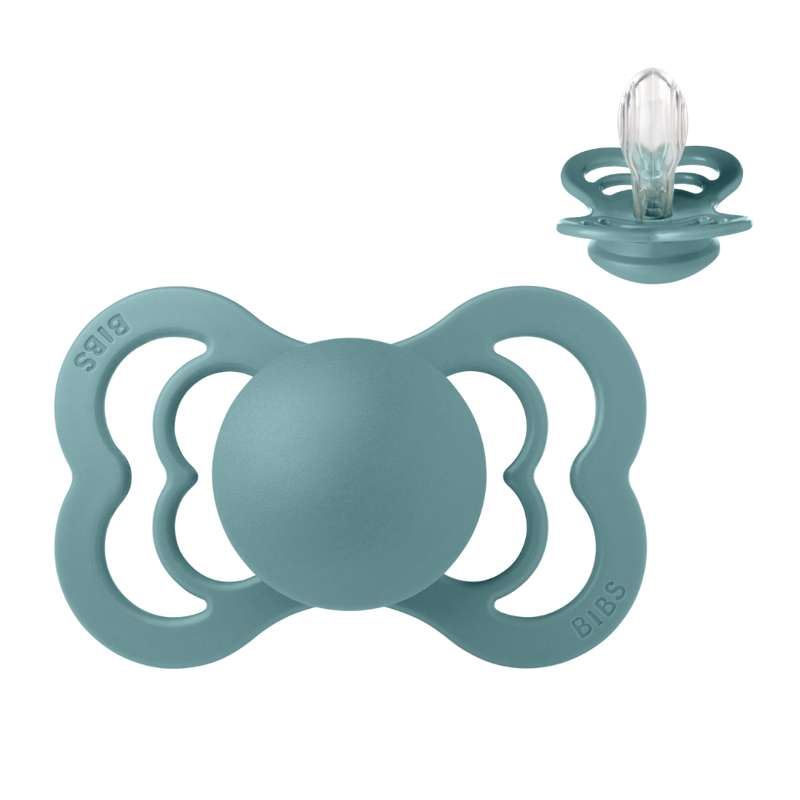 Nejvyšší je BIBS'Výhradní cumlík s et Široký štít. Štít je pečlivě navržen s velkými otvory na každé straně, aby se zajistil minimální kontakt s citlivou a jemnou pokožkou kolem úst dítěte, což znamená menší šanci na strukturu vlhkosti ze slin, které mohou způsobit vyrážky. Štít je dodáván ve dvou různých velikostech, které odpovídají velikosti bradavky. Větší Savička - Čím větší je štít. Bradavka je symetrická a přichází v lodích přírodní guma/latex a silikon. Silikonová bradavka má et Inovativní vzor, ​​který posiluje materiál. Supreme je k dispozici ve velikosti 1 a 2.