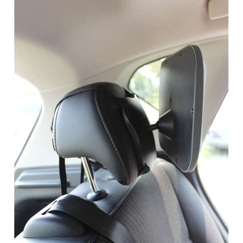 Poskytuje 360° výhled. Bezpečně se upevňuje na opěrku hlavy, je nastavitelný a snadno se montuje.