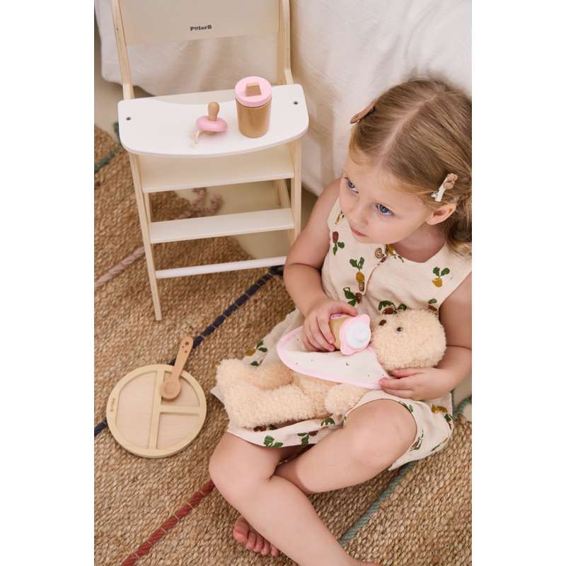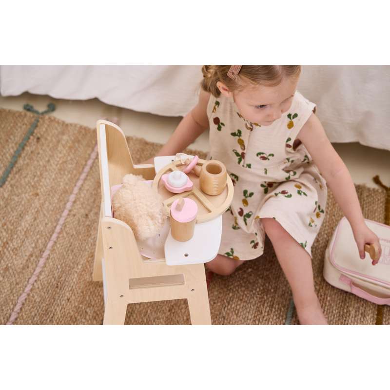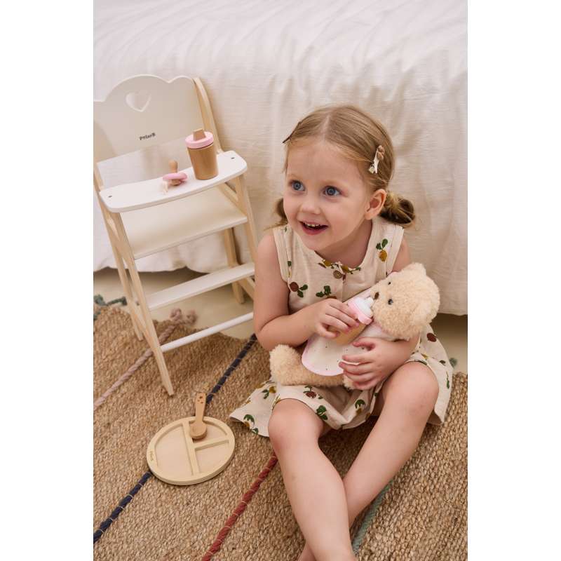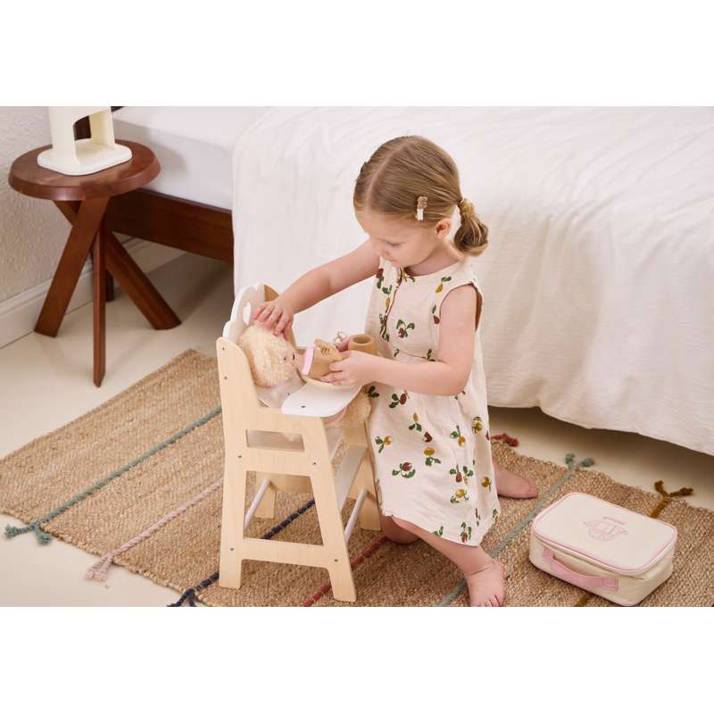 Det er spisetid for dukken! Dette søde fodringssæt indeholder alt, hvad små omsorgsfulde forældre har brug for, når dukken skal have mad – uanset om det er derhjemme eller på farten.