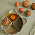 Arne rozdělený talíř je rozdělen na čtyři části, a pak je na dítěti, aby si jídlo smíchalo.