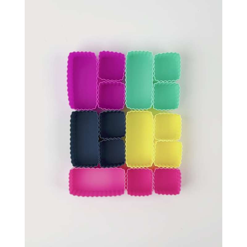 Balíček se 3 silikonovými formami, které přesně pasují do krabičky na jídlo.