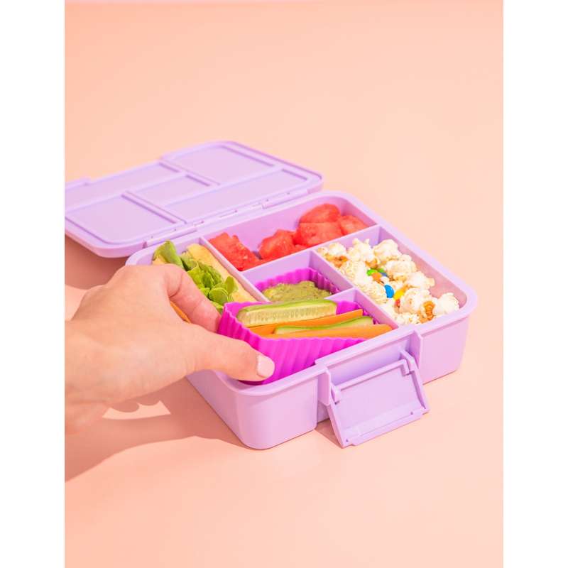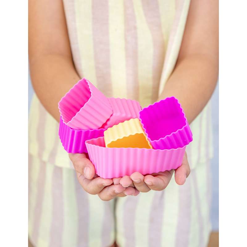 Silikonové formy dokonale zapadnou do krabičky na jídlo vaše nebo vašeho dítěte MontiiCo. Ale protože jsou flexibilní, mohou být samozřejmě použity v jakékoli krabičce na jídlo.