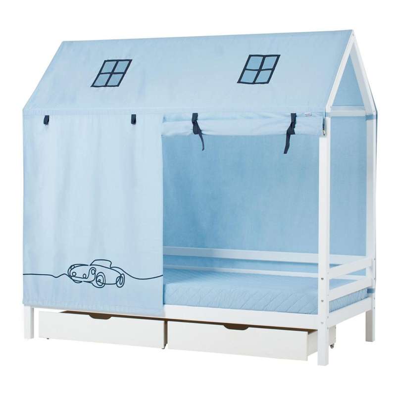 Smart Stoffdach für Hausbetten, aus dem Hoppekids CARS Univers. Mit dem coolen Stoffdach von Hoppekids wird das Hausbett zu einer ruhigen Basis und einer sicheren Höhle mitten im Kinderzimmer. Das Stoffdach ist einfach auf das Bett zu setzen und abzunehmen mit den praktischen Klettverschlussriemen. Es gibt kleine Fenster oben im Dach und die Vorderseite ist in zwei Teile geteilt, sodass man das Bett ganz oder teilweise öffnen kann. Wenn das Stoffdach auf das Hausbett kommt, ist das Bett nicht mehr nur ein Bett. Wenn nur die Fantasie Grenzen setzt, wird das Bett vielleicht zu einem Rennwagen, einer Zeitmaschine oder vielleicht zu einem großen Lastwagen. Egal, was das Bett wird, es gibt Platz für sowohl Spiel als auch Vertiefung.