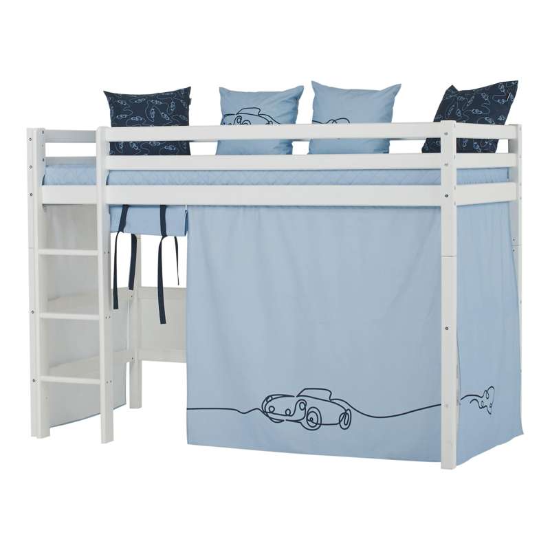 Cool CARS Vorhang für ECO Dream und ECO Luxury Betten von Hoppekids. Mit dem praktischen Vorhang wird der Platz unter dem Bett zu einem et magischen Ort, wo nur die Fantasie Grenzen setzt. Egal, ob es Zeit für Vertiefung oder Spiel und Abenteuer ist, die Höhle hinter dem Vorhang ist perfekt. Wenn es besonders gemütlich sein soll, kann die Höhle mit weichen Teppichen, Kissen, Lichterketten und anderen Gemütlichkeitselementen eingerichtet werden. Der Vorhang passt zu halben Hochbetten und Etagenbetten von Hoppekids. Der Vorhang ist Teil des CARS Universums, in dem es mit den schönen Textilien richtig zur Sache geht. Im Universum sind Autos das große Thema und das einzelne Design sowie die schönen Blau Farben machen das Universum für jeden kleinen Autoenthusiasten unwiderstehlich.
