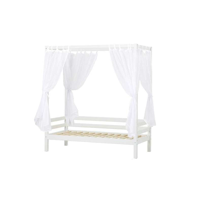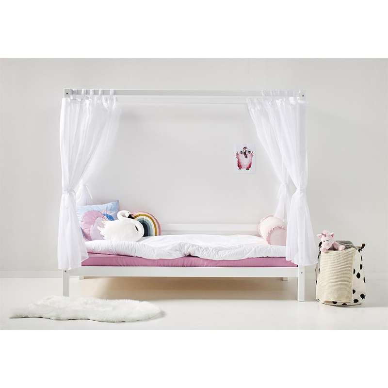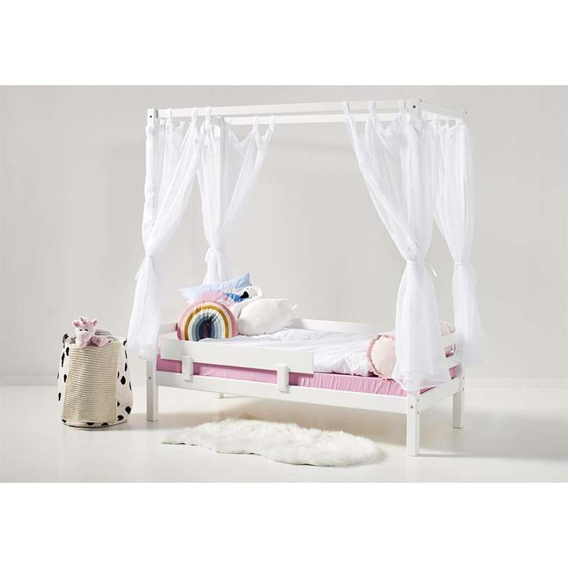 Süßer Himmelstoff aus transparentem weißen Material von Hoppekids. Schafft eine gemütliche Märchenatmosphäre im Himmelbett. Der Himmelstoff sorgt für eine angenehme Stimmung und Atmosphäre im Bett und im Kinderzimmer. Der Vorhang schafft eine höhlenartige Stimmung im Bett, ohne den Rest des Zimmers abzuschotten. Die Vorhänge können sowohl frei hängen als auch an den Bettpfosten befestigt werden. Der Vorhang ist einfach zu montieren und sitzt gut fest. Das Kind kann den Vorhang selbst auf- oder zuziehen.