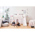 Nutze den Platz unter dem Bett als Spielbereich oder füge eine Matratze, Kissen und Lichterkette hinzu, um eine lustige und stimmungsvolle Höhle zu schaffen. Perfekt zum Lesen von Büchern oder für Besuche von Spielkameraden.