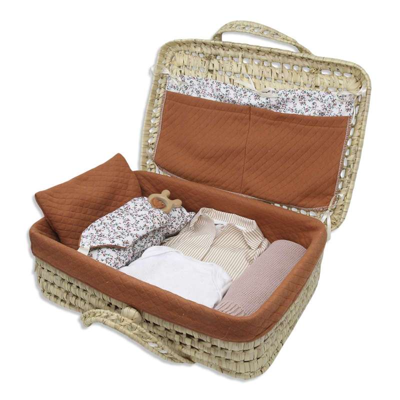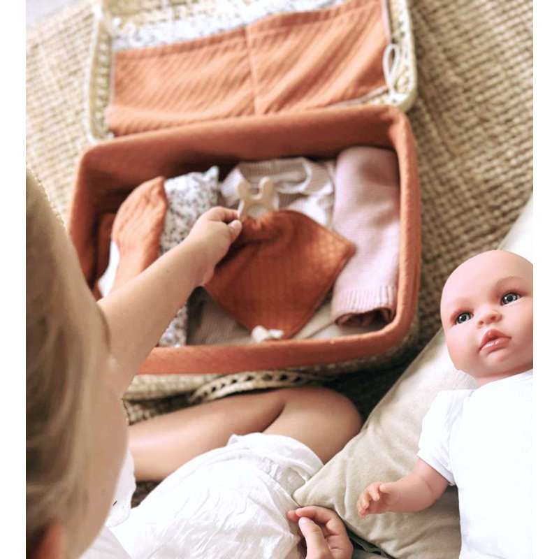 Memories by Así Puppenspielzeug - 43-46 cm. - Puppenkoffer aus Flechtwerk - m. Inhalt - Blumenmuster