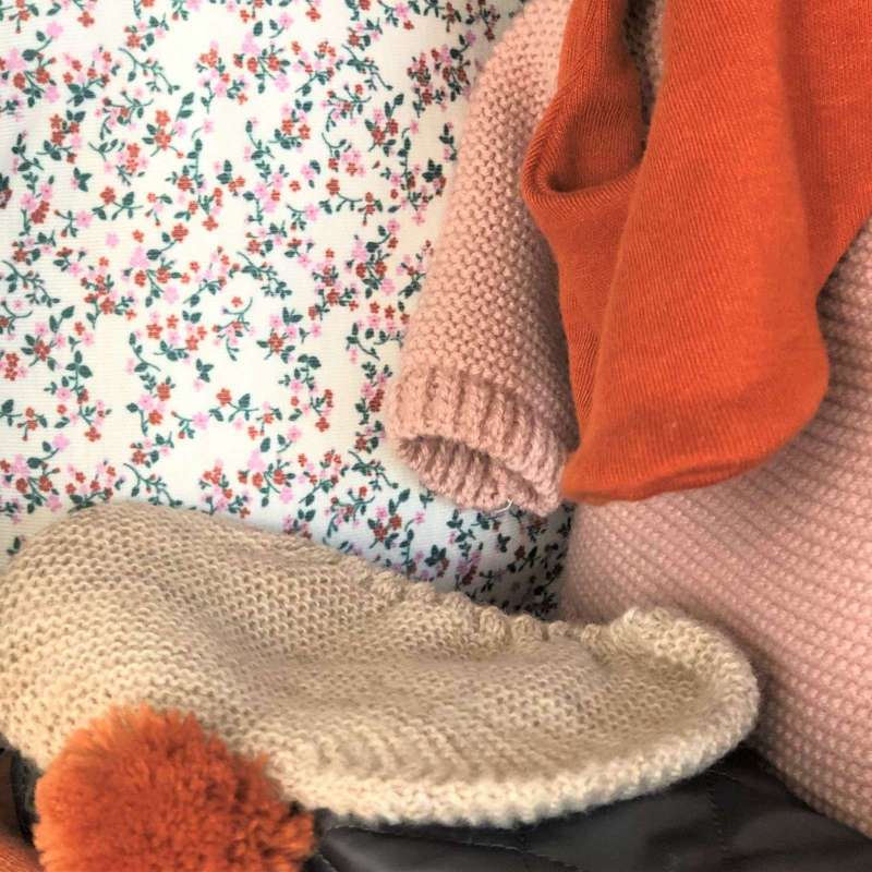 Die süße Strickmütze aus sandfarbenem, meliertem Garn strahlt Nostalgie aus.