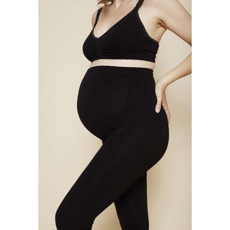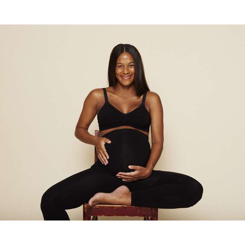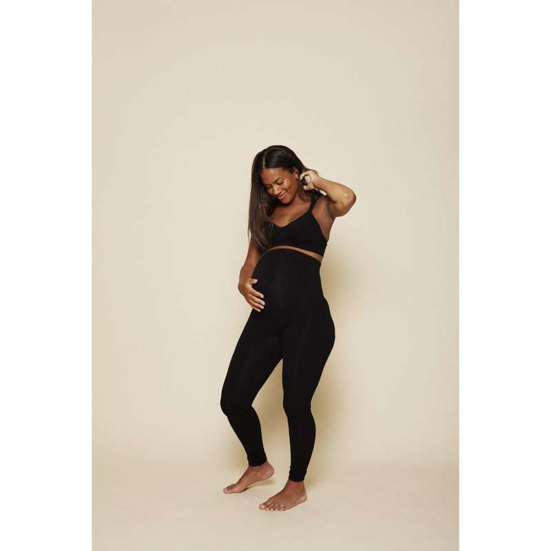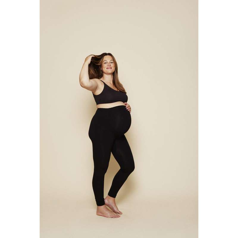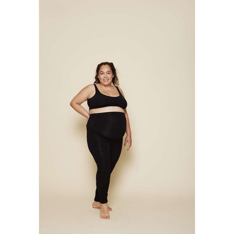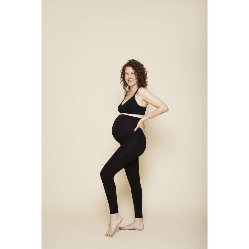 Schwarze Schwangerschaftsleggings aus ökologischer Bambusviskose mit integrierten Stützpaneelen im Rücken und unter dem Bauch. Bambus ist et ein weiches und atmungsaktives Material mit temperaturregulierenden Eigenschaften. Diese Leggings sind somit gut für alle Jahreszeiten geeignet, was bedeutet, dass sie dich während der gesamten Schwangerschaft begleiten können.