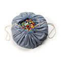 Aber damit ist jetzt Schluss! Denn mit den super praktischen Play & Go Tragetaschen hast du et Spielteppich und Spielzeugaufbewahrung in einem. Lass das Mini auf dem Aufbewahrungsteppich spielen und wenn der Tag zu Ende ist, ziehst du einfach die Schnur im Teppich zusammen und schon hast du eine schöne Sammlung aller Kleinigkeiten.