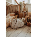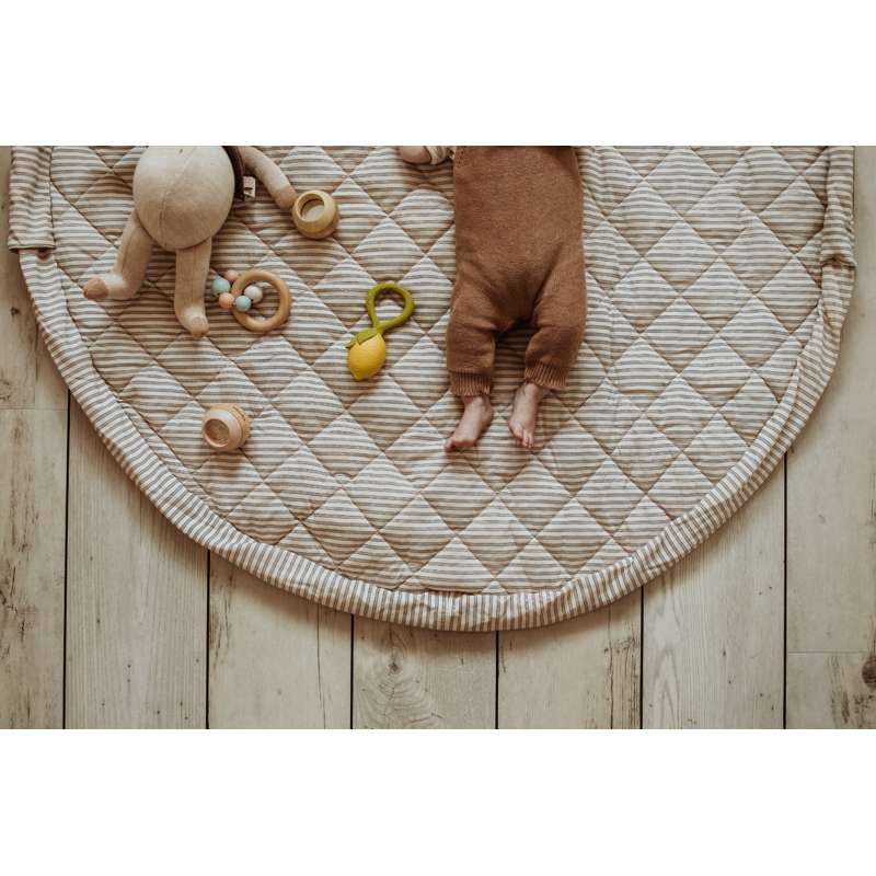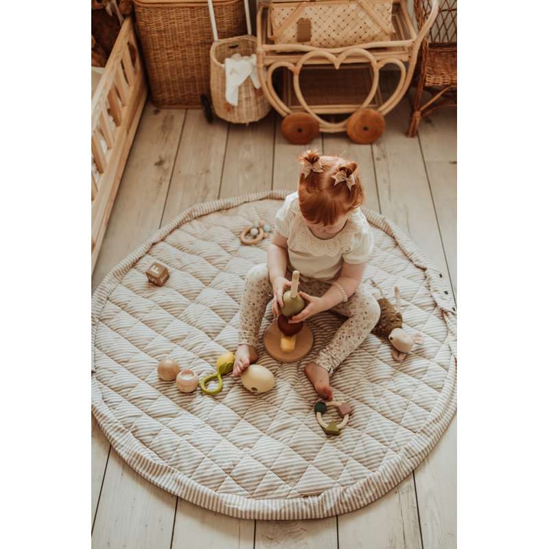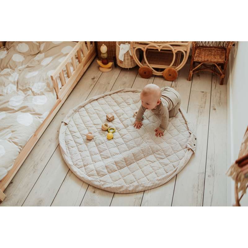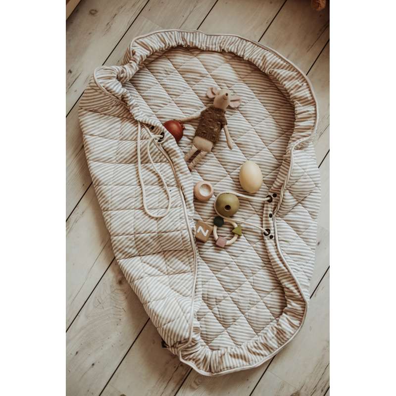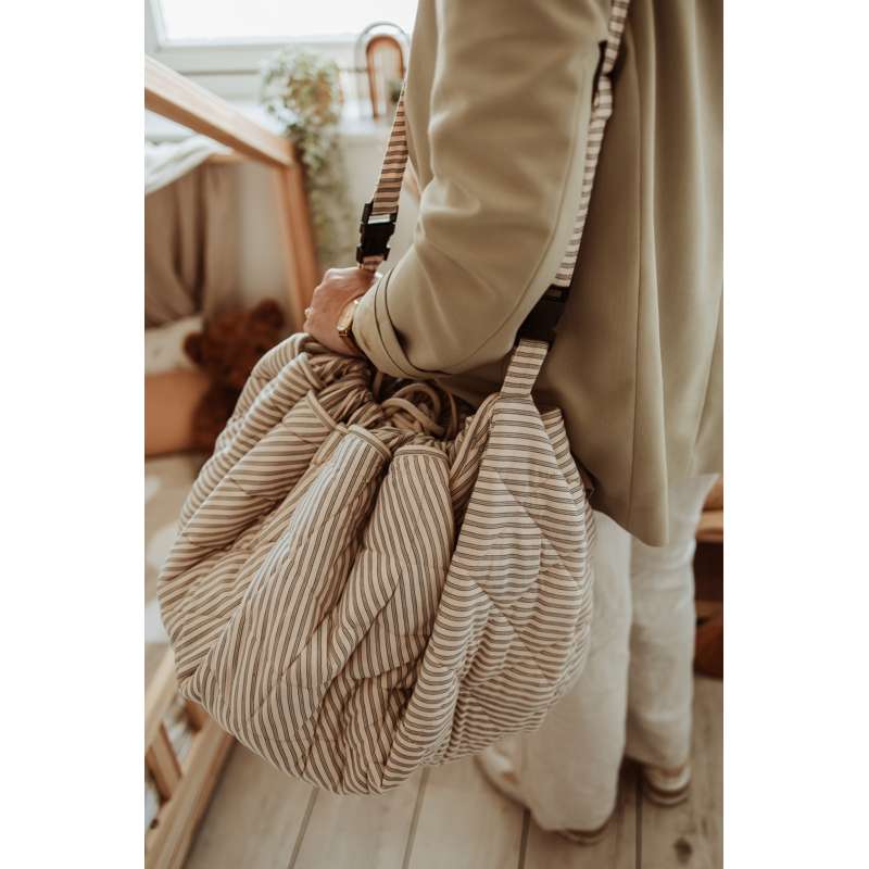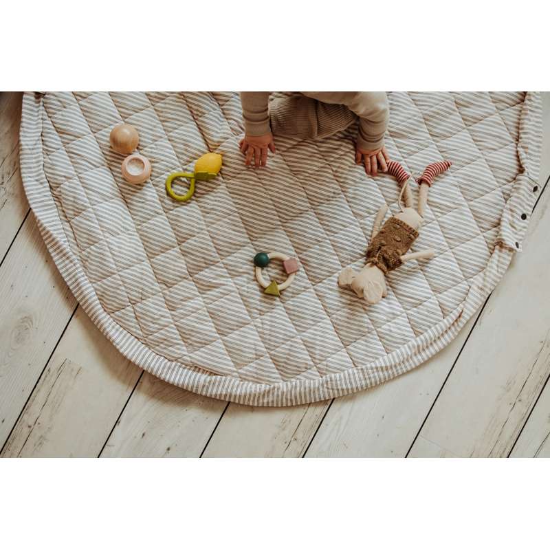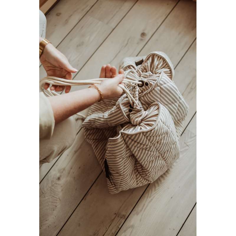 Der Teppich kann mit Spielzeug und Büchern gefüllt werden, sodass er auch ideal für Ausflüge in den Park oder Besuche bei Freunden ist. Et eine funktionale und charmante Wahl für aktive Familien.