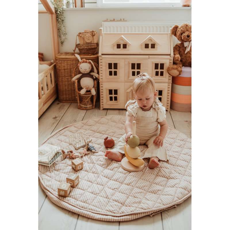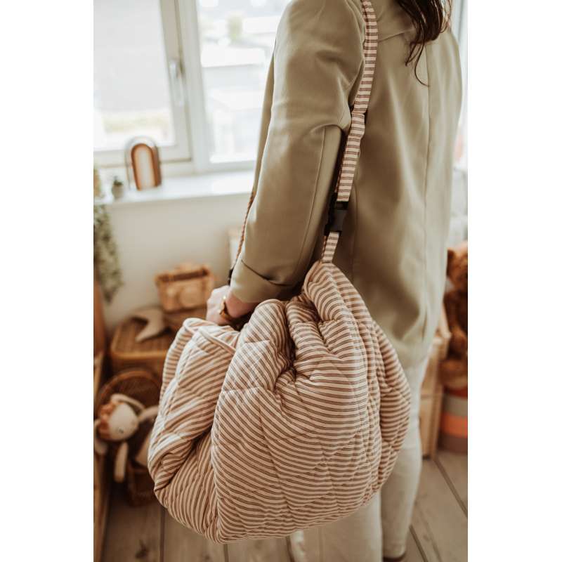 Der Teppich kann mit Spielzeug und Büchern gefüllt werden, sodass er auch ideal für Ausflüge in den Park oder Besuche bei Freunden ist. Et eine funktionale und charmante Wahl für aktive Familien.