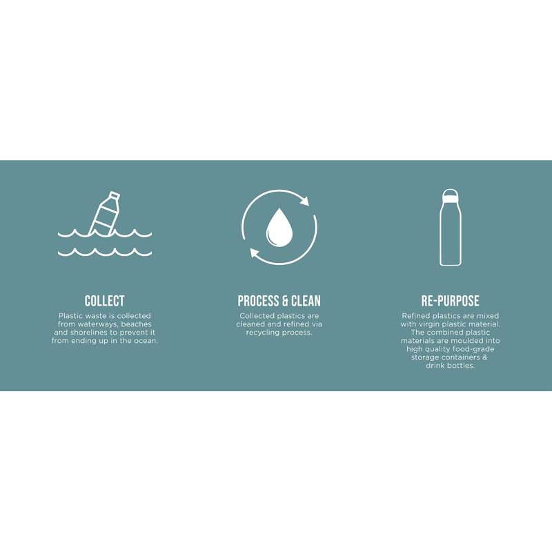 Sistema Ocean Bound ist eine Produktreihe von Lunchboxen, die aus 50% recyceltem Meereskunststoff hergestellt werden. Plastikmüll wird von Land, Küsten, Wasserwegen, Flüssen und Stränden gesammelt, um zu verhindern, dass er im Ozean landet. Der gesammelte Kunststoff wird durch Recyclingprozesse gereinigt und raffiniert. Raffinierter Meereskunststoff wird mit neuem Kunststoffmaterial gemischt, und aus den kombinierten Kunststoffmaterialien werden neue lebensmittelechte Aufbewahrungsserien und hochwertige Trinkflaschen gegossen.