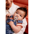 BIBS De Lux προσφέρεται ως το μόνο μοντέλο στο μεγ. one size. Το κεφάλι της πιπίλας είναι στρογγυλό, κατασκευασμένο από σιλικόνη και προτείνεται για παιδιά όλων των ηλικιών.