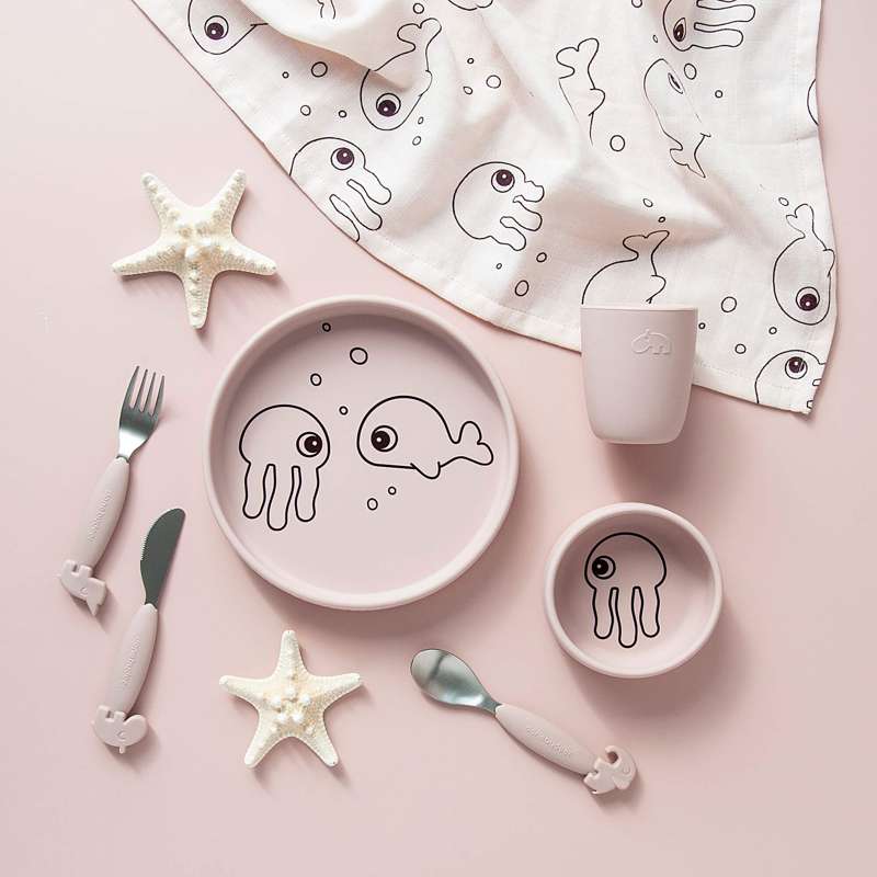 Done By Deer Σετ φαγητού - Σιλικόνη - Θαλάσσιοι φίλοι (Πούδρα)
