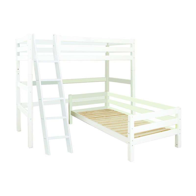 Hoppekids ECO Luxury - Κρεβάτι με κουκέτα - 90x200 εκ. - Γωνιακός συνδυασμός - Λοξή σκάλα - Λευκό