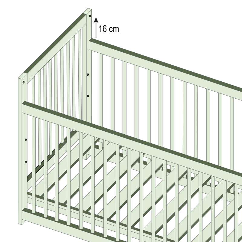 • 16 εκ. από το πάτωμα – χρησιμοποιήστε αυτή τη ρύθμιση όταν το παιδί σας μπορεί να σταθεί, ώστε να είναι ασφαλή στην κούνια.