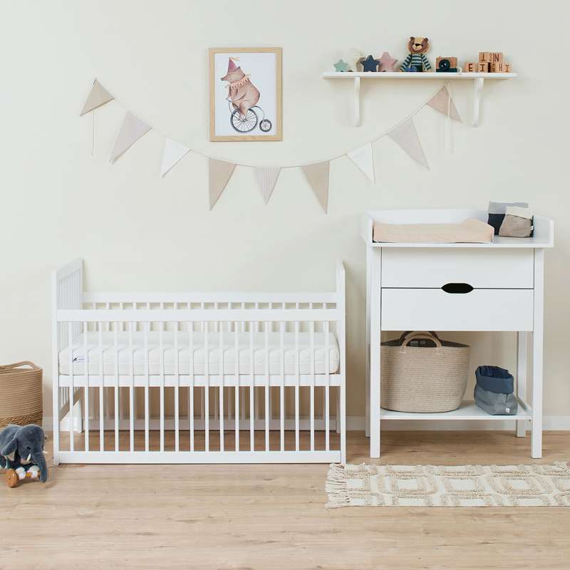 Η κούνια είναι κατασκευασμένη από ανθεκτικό πεύκο και έχει υποστεί επεξεργασία με ένα υδατοδιαλυτό βερνίκι που είναι απαλλαγμένο από επιβλαβείς ουσίες και περιττές χημικές ουσίες – ασφαλές και για το παιδί σας και για το περιβάλλονet.