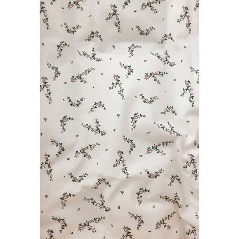 Η περκάλι είναι et ένα λεπτό, πυκνά υφασμένο υλικό με ματ φινίρισμα και μια “τραγανή” απαλότητα, που γίνεται ακόμα πιο απαλή πλύση μετά από πλύση. Το σχέδιο, Powder blossom, είναι μικρές, λεπτές ανθισμένες κληματίδες τυπωμένες σε ανοιχτό κρέμ φόντο και είναι unisex, έτσι ώστε να είναι εύκολο να χρησιμοποιηθεί για περισσότερους αδελφούς.