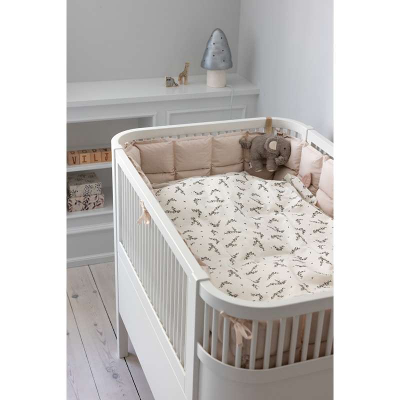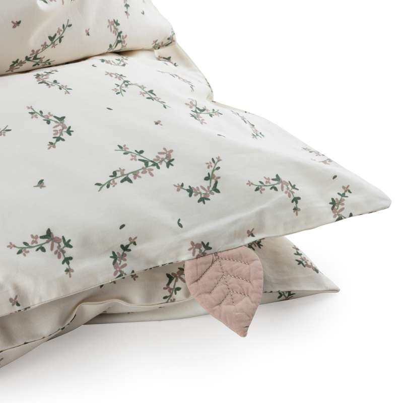 Η κλινοσκεπάσματα περιλαμβάνει παπλωματοθήκη και μαξιλαροθήκη σε βρεφικό μέγεθος. Και τα δύο διαθέτουν έναν καλό κρυφό φερμουάρ YKK, ώστε να μην ενοχλεί τον ύπνο. Ως επιπλέον λεπτομέρεια, η παπλωματοθήκη έχει ραμμένο ένα μικρό φύλλο et, που λειτουργεί ως ανατροπή για μικρά, νυσταγμένα δάχτυλα.