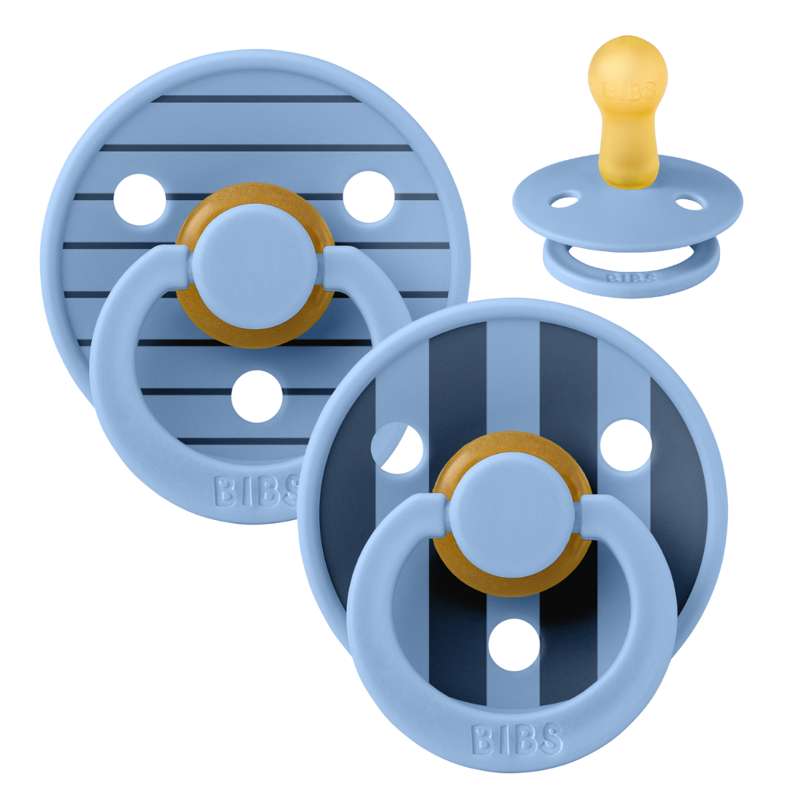 Bibs Round Colour Pacifier - 2-Pack - sz. 2 - natural rubber - Studio - Pin - Sky Blue/Sky Blue