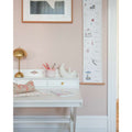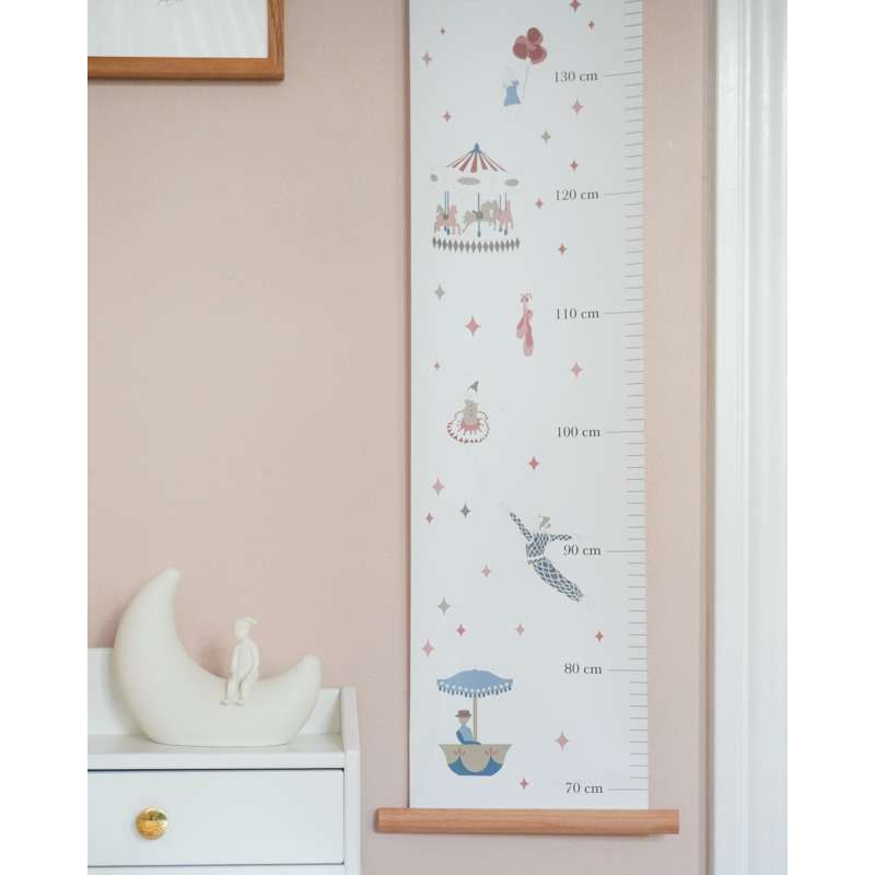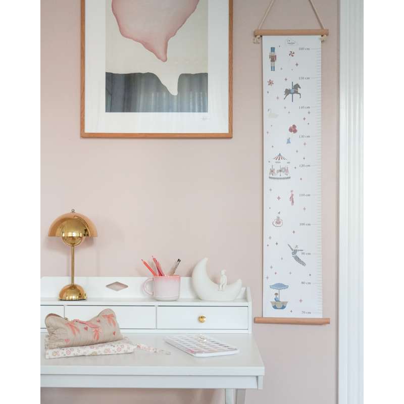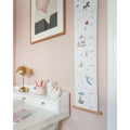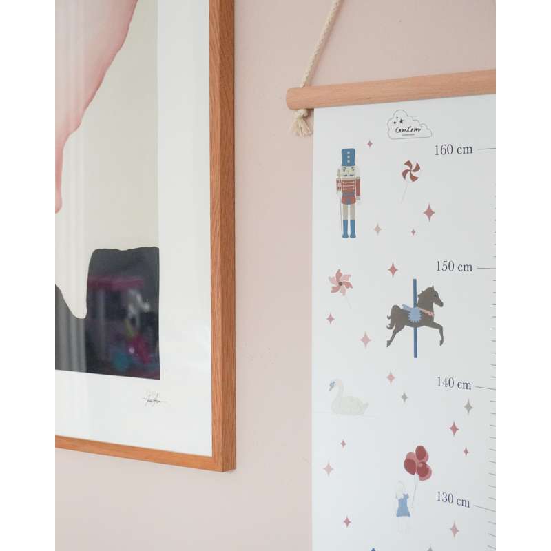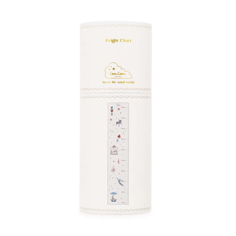Varenummer: CAM-1614-P98-000-WWThe finest, vintage-inspired height chart, made from sturdy FSC-certified paper with a matching wooden hanging strip. The height chart is adorned with beautiful, hand-drawn animals, fruits, and plants that are known and loved from our Alphabet and Number posters, and it allows you to measure and record your child's height in a sweet and poetic way, where the child starts as a little mouse and ends as a giraffe. Specifications 2x100x20 cm Material and care 250 g. paper / birch wood Do not wash. Wipe only with a dry cloth.