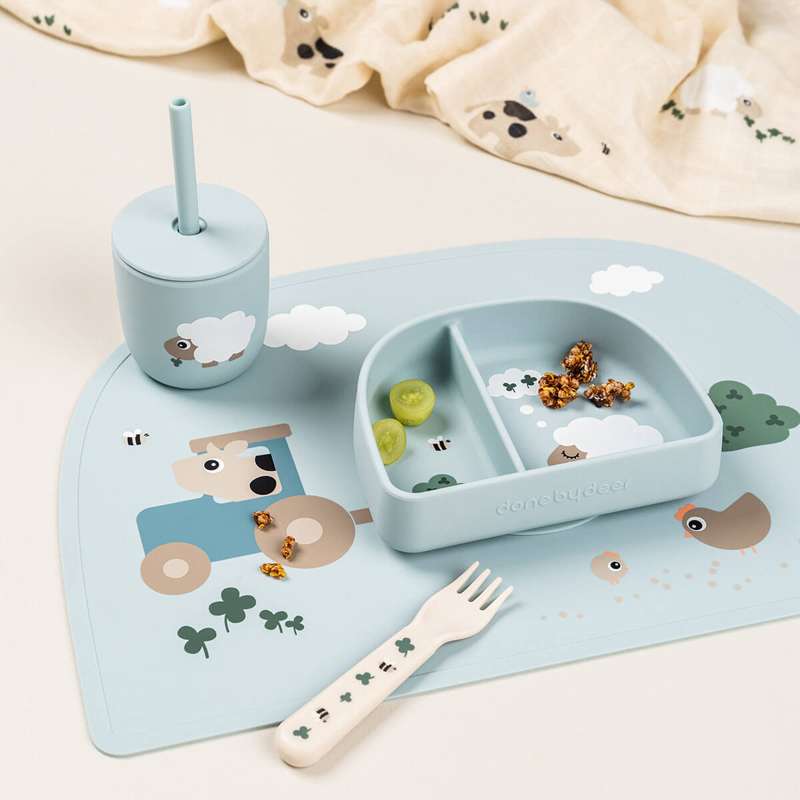 Done by Deer Straw cup - Silicone - 2 pcs. - Tiny Farm - Blue