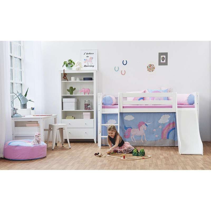 Fun ECO Luxury Mid sleeper bed in size 90x200 cm with a slanted ladder and slide from Hoppekids. The bed provides extra floor space in the room. The slide makes it fun to get up in the morning, while the slanted ladder makes it safe and easy to climb into bed. The bed is Nordic Swan Ecolabeled, has a lifetime warranty and is treated with environmentally friendly, water-based varnish.
