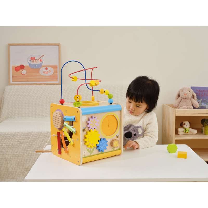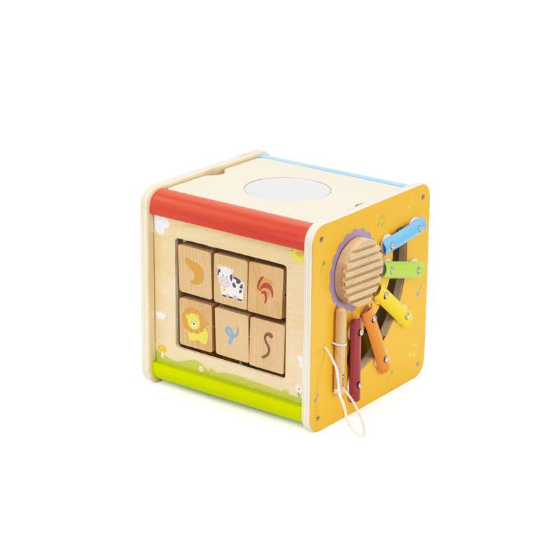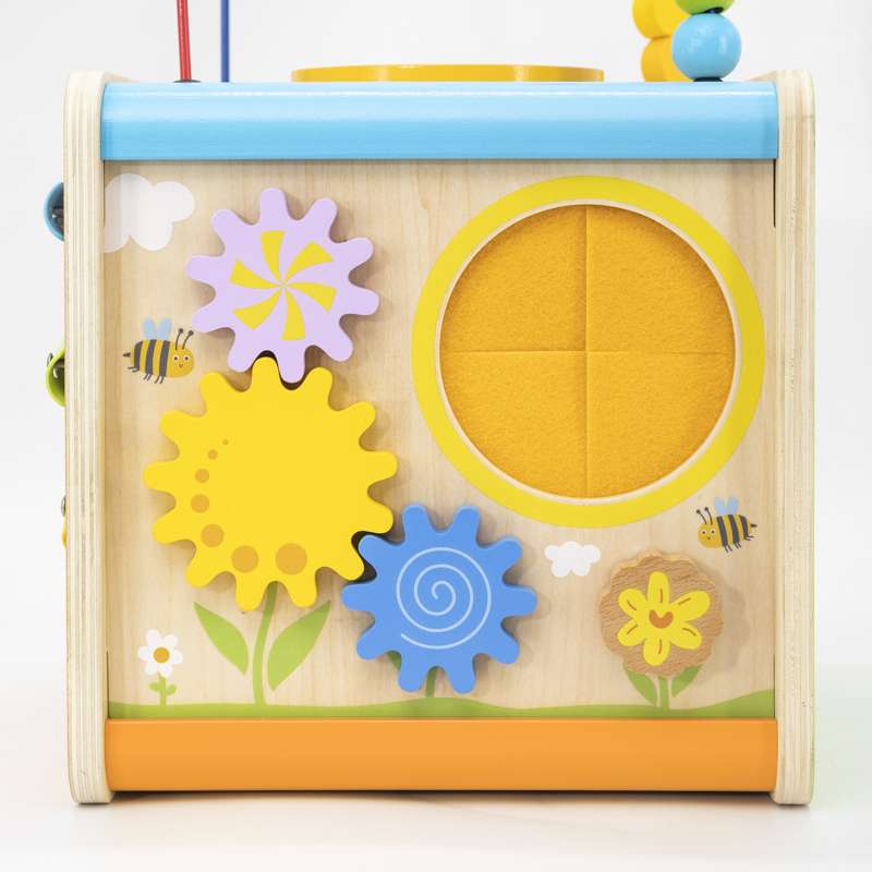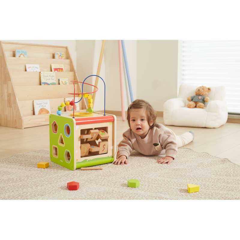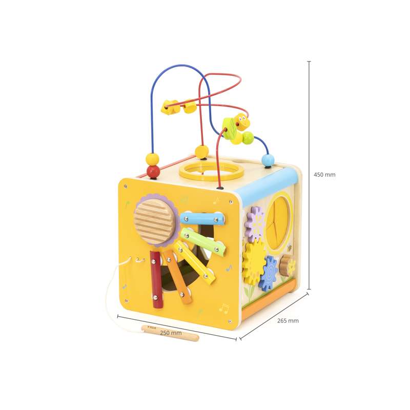 Med denne alsidige 9-i-1 aktivitetskube er der garanti for timevis af sjov og lærerig leg! Kassen er designet til at stimulere barnets sanser og motorik gennem en lang række aktiviteter samlet ét sted.