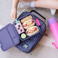 In the lid of the lunchbox, there is a silicone seal that closes down over the dividers in the lunchbox. This ensures that all sealed compartments close tightly, allowing you to serve thick dressings, ketchup, hummus, pesto, etc. in your MontiiCo. However, do not place liquid/watery foods in the compartments.