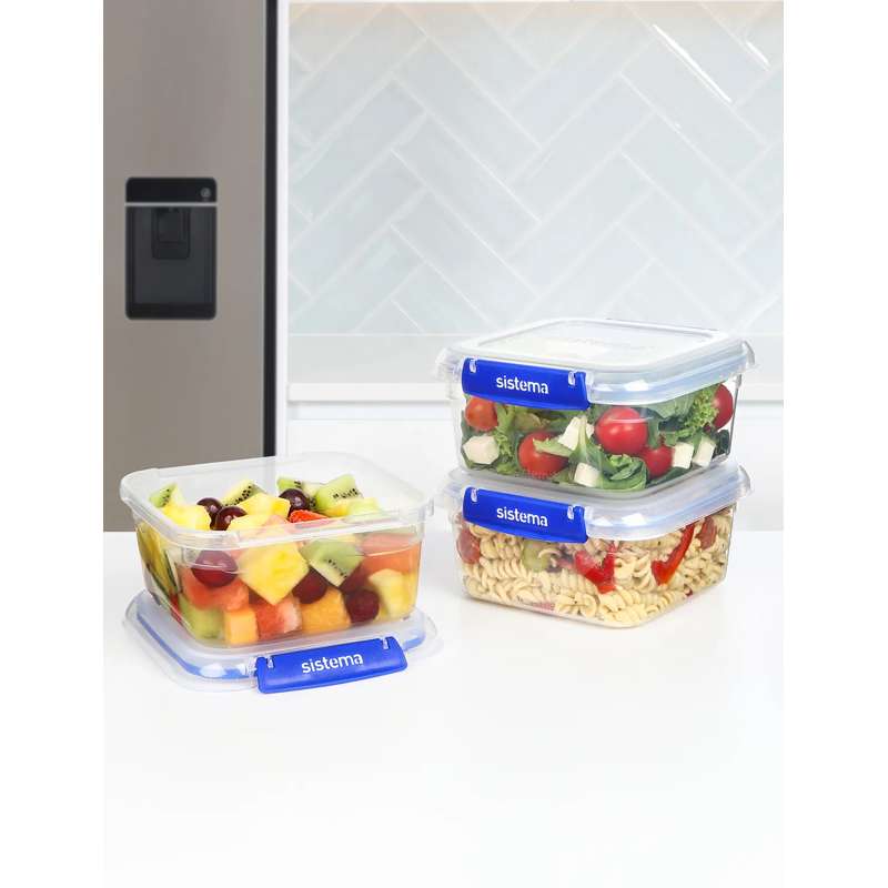 Sistema Food Storage - Clip It Plus - Square - 3-Pack - 1.15L - Blue