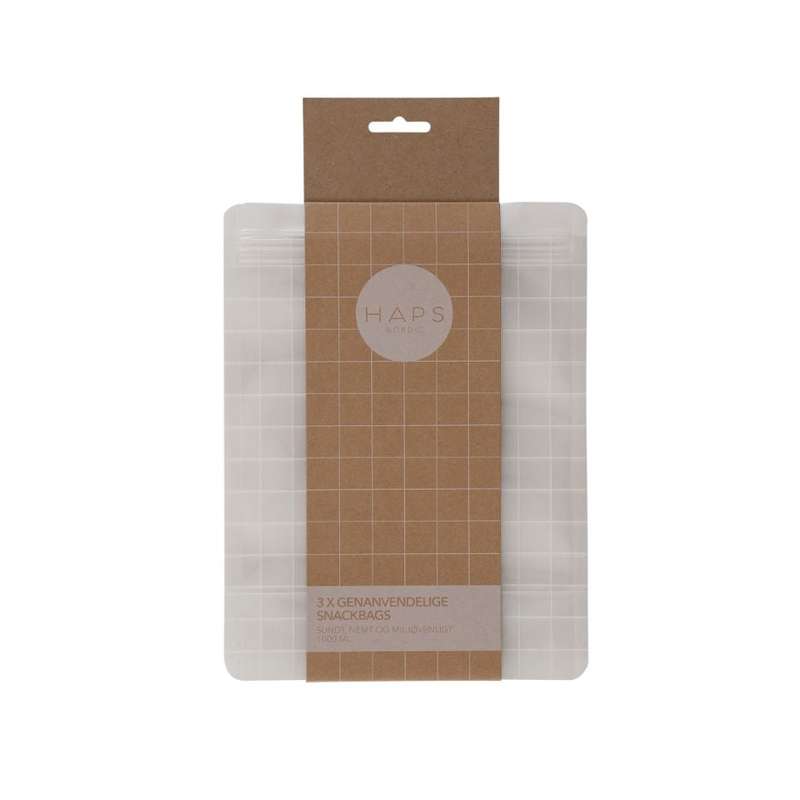 HAPS Nordic Bolsas de Snack Reutilizables - 3-Pack - 1000ml - Transparente Verificar