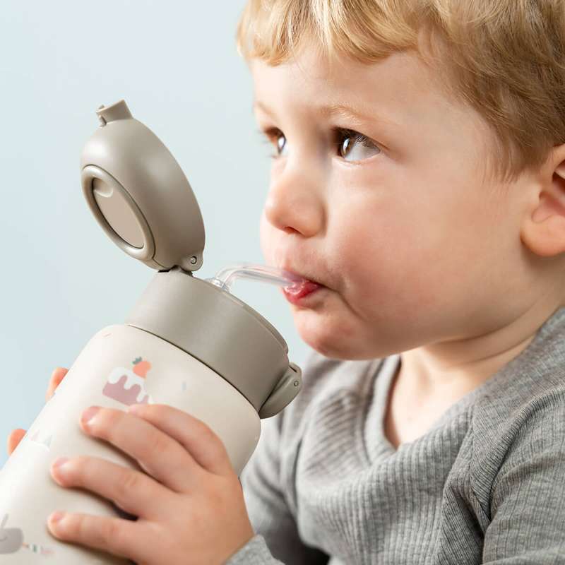 Done by Deer Botella térmica con pajita - Celebration - 340 ml - Arena