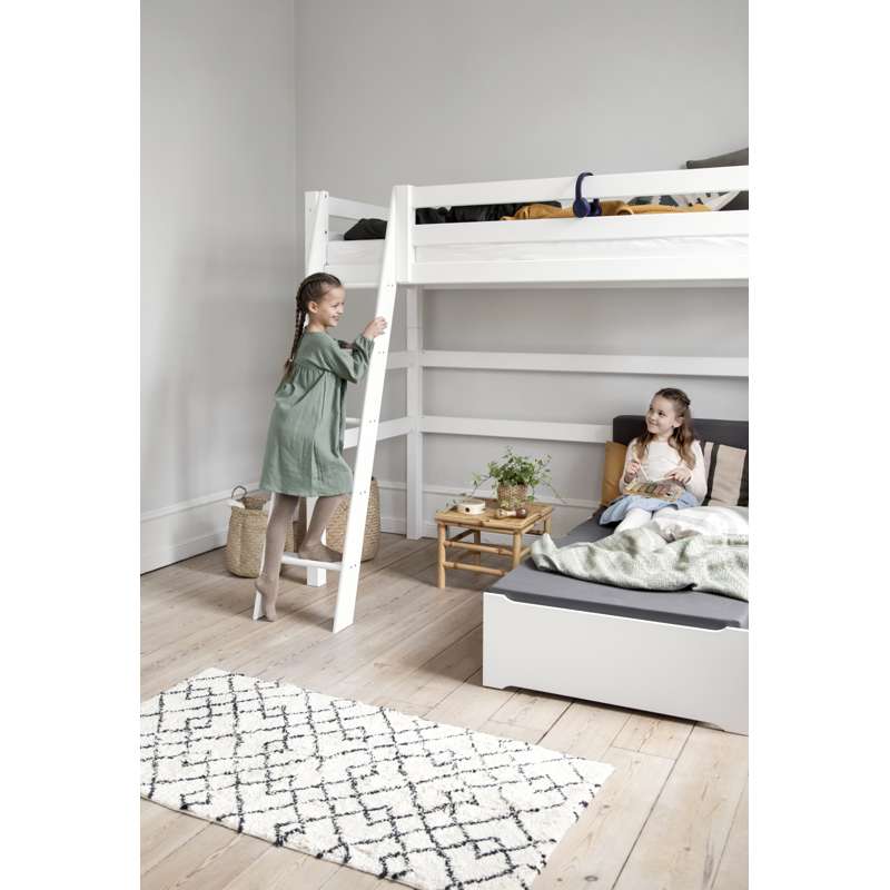 escalera de cuerda a ECO Luxury Cama alta de Hoppekids. La escalera se adapta a camas de todos los tamaños de colchón. La escalera es, al igual que el resto de la serie ECO Luxury, Nordic Swan Ecolabel, tiene garantía de por vida y está tratada con un barniz ecológico a base de agua.