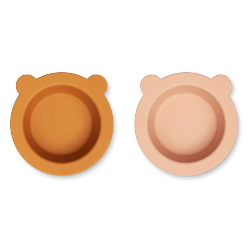 Liewood Peonias Antideslizante Cuenco - 2-Pack - Mostaza/Mezcla de Rosa de Toscana