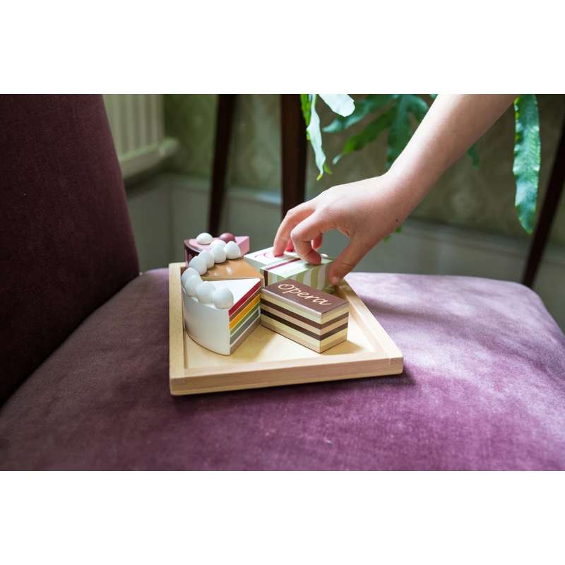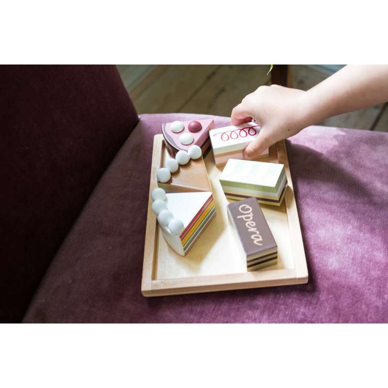 MaMaMeMo Comida de madera - Porciones de pastel en bandeja