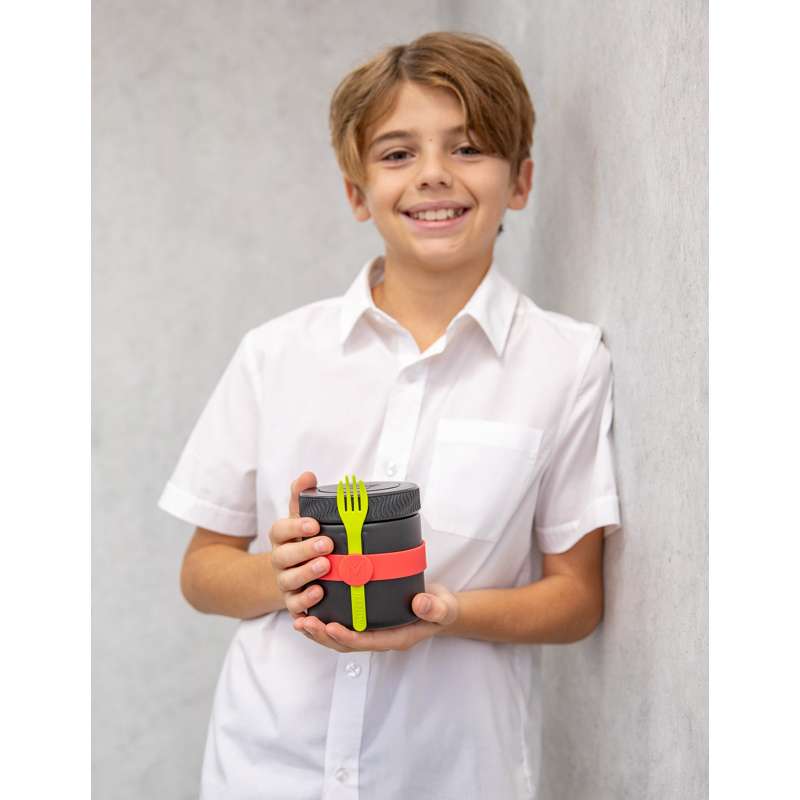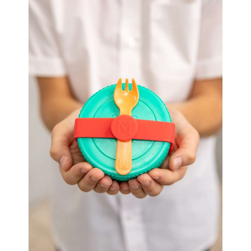 MontiiCo Banda de Cubiertos es un pequeño detalle genial que hace que la lonchera sea aún más completa — fácil de usar y esencial en el viaje diario a la escuela, guardería o de excursión.