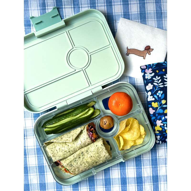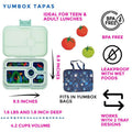 Yumbox Tapas es la más grande de las fiambreras Yumbox. Aquí hay espacio suficiente para suficientes sándwiches de pan de centeno para satisfacer a un gran adolescente, o por supuesto a un adulto. La fiambrera de tapas también puede ser et una buena opción para los escolares, donde el almuerzo debe empacarse junto con fruta o una merienda.