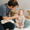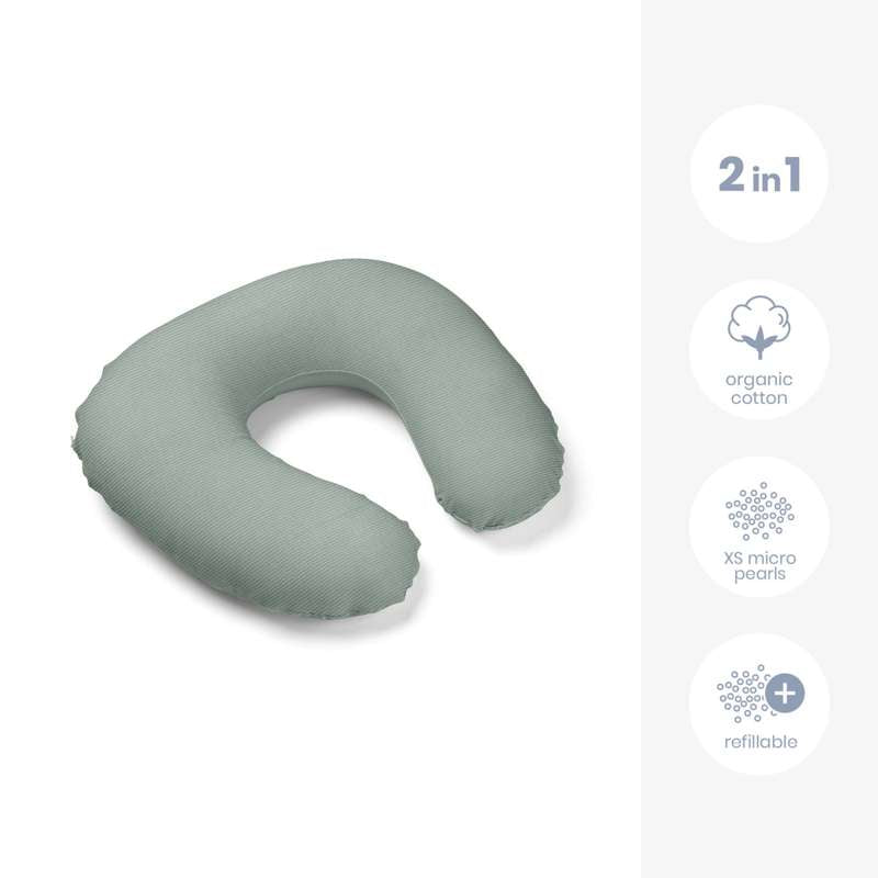 Pyöreä Doomoo-imetystyyny tarjoaa mahdollisuuden istua mukavasti äidin vatsan ympärillä. Tyyny on täytetty pienillä EPS-palloilla, jotka muotoutuvat äidin ja vauvan kehon mukaan. Se on pehmeä ja mukava, ja säilyttää täytteen Imetys läpi ilman, että se litistyy. Tällä tavalla vauva ei menetä otettaan nännistä ja saa optimaalisen imetysasennon.