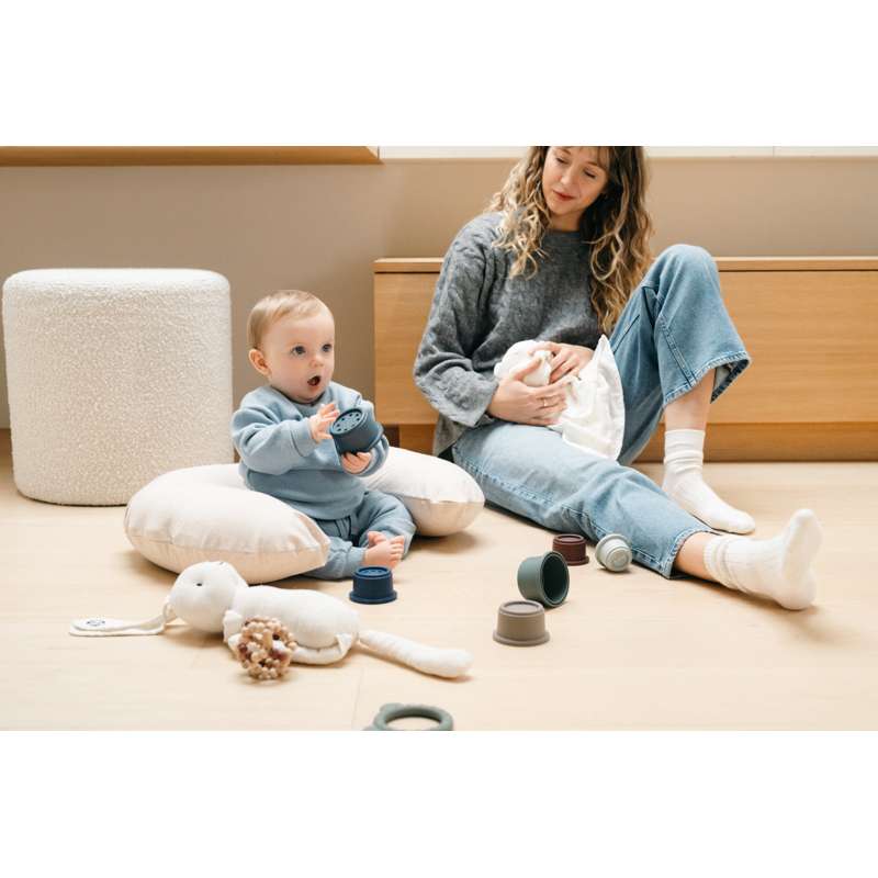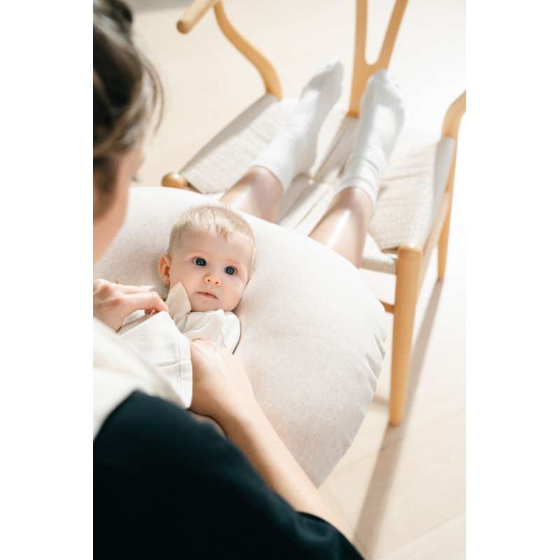 Pyöreä Doomoo-imetystyyny tarjoaa mahdollisuuden istua mukavasti äidin vatsan ympärillä. Tyyny on täytetty pienillä EPS-palloilla, jotka muotoutuvat äidin ja vauvan kehon mukaan. Se on pehmeä ja mukava, ja säilyttää täytteen Imetys läpi ilman, että se painuu kasaan. Tällä tavalla vauva ei menetä otettaan nännistä ja saa optimaalisen imetysasennon.