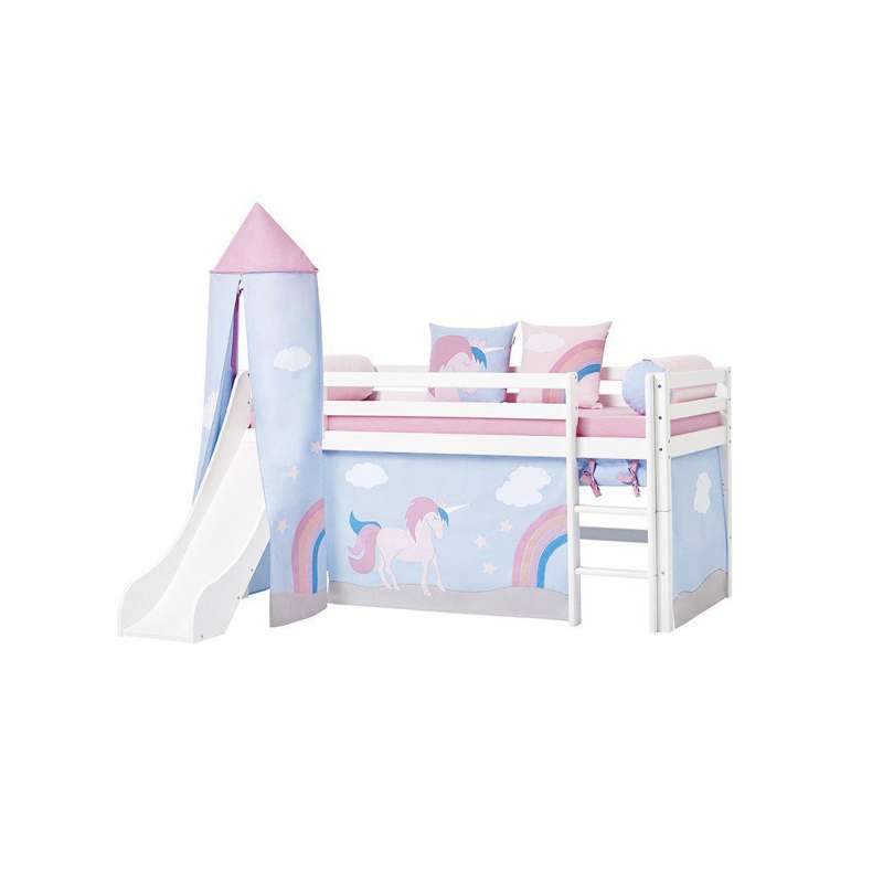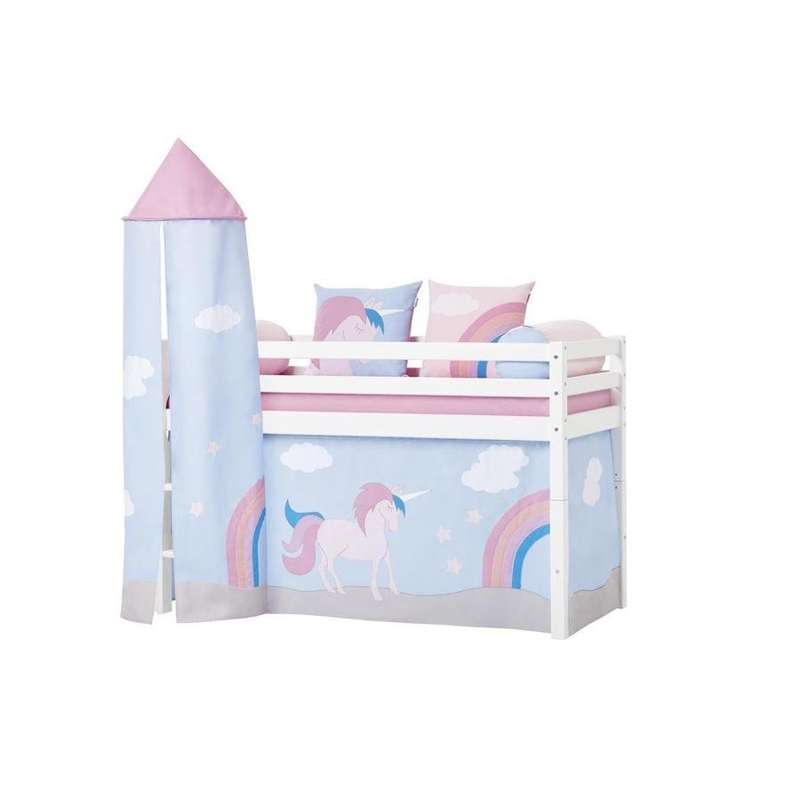 Satujen torni universumista Unicorn, joka tekee matkastasi portaita ylös ja sänkyyn hauskemman. Sopii kaikille puolikorkeille sängyille Hoppekidsiltä.