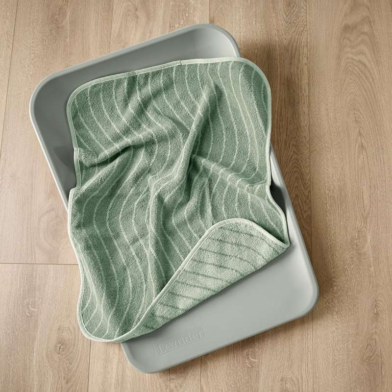 Pehmeä Leander toppi on valmistettu luomupuuvillafroteesta ja se sopii täydellisesti Leander Matty™ hoitotyynyyn ja Leander Wally™ seinähoitopöytään. Käytä sitä et pienenä käsipyyhkeenä, tai laita se vauvan alle vaihtaessasi vaippaa. Se suojaa hoitoalusta ja auttaa sinua, jos vahinko sattuu. Toppia voi kääntää. Tämä antaa sinulle kaksi erilaista puolta ja väriä, ja siten useita mahdollisuuksia tyylittelyyn. Toppien värit ovat yhteensopivia Leander Matty™ hoitotyynyn värien kanssa.