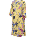 Sisältää 3/4 hihat, pyöreän kaula-aukon, halkion hihansuiden kohdalla ja kaarevan halkion sivusaumassa.